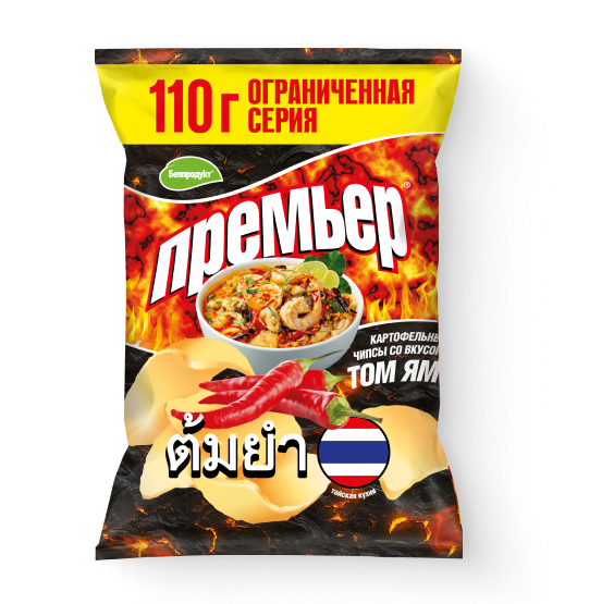 Состав: пеллет для чипсов и снеков картофельный (крахмал картофельный, хлопья картофельные, соль), масло подсолнечное рафинированное дезодорированное, ароматизатор «Том Ям» (соль, мальтодекстрин, усилители вкуса и аромата (Е621, E627, Е631), молоко сухое цельное, креветка порошок, регуляторы кислотности (Е330, Е262), вкусоароматические вещества и вкусоароматические препараты, антикомкователь (Е551), жир растительный, лук порошок, красители (Е160с, Е150с).
